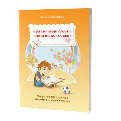 Ընդգրկում է ավելի քան 4000 բառ և բառակապակցություն. ներառված են հատկապես այն հատուկ անունները, որոնք հանդիպում են տարրական դասարանների համար նախատեսված տարբեր դասագրքերում, ուղեցույցներում, մանկապատանեկան հանդեսներում և այլուր: Բառարանը օգտակար կլինի նաև դասվարների, մանկավարժական բուհերի դպրոցական ֆակուլտետի ուսանողների և հետաքրքրասերների համար առհասարակ: